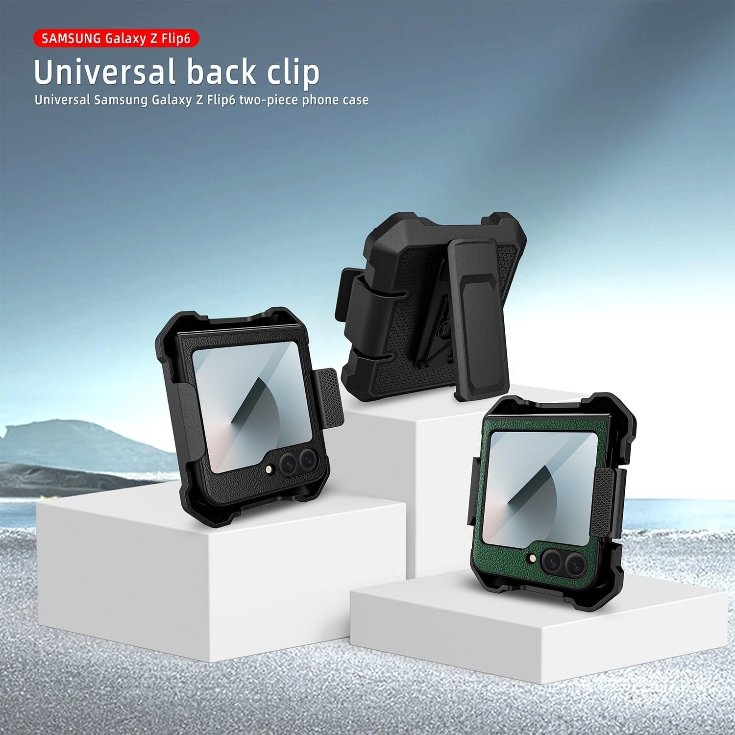 Cell Phone Flip Case Cover Holster Case Compatible with Samsung Galaxy Z Flip 6 2024, Shell & Holster Cell Phone Cover Shell Case for Men with Built-in Kickstand + Swivel Belt Clip Protective Holster(